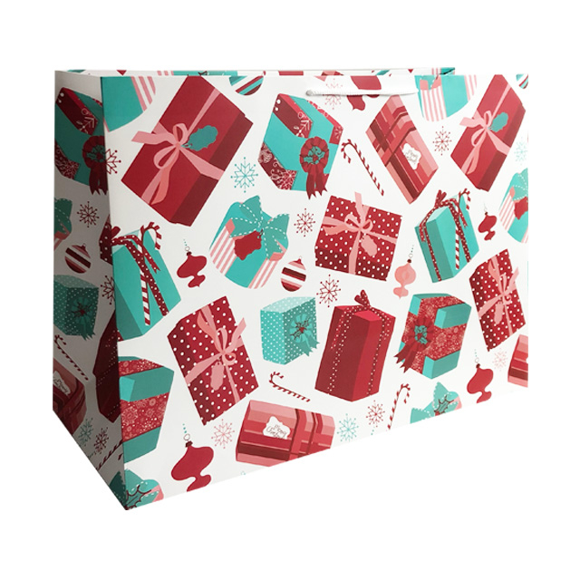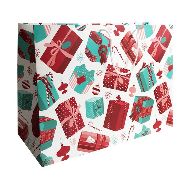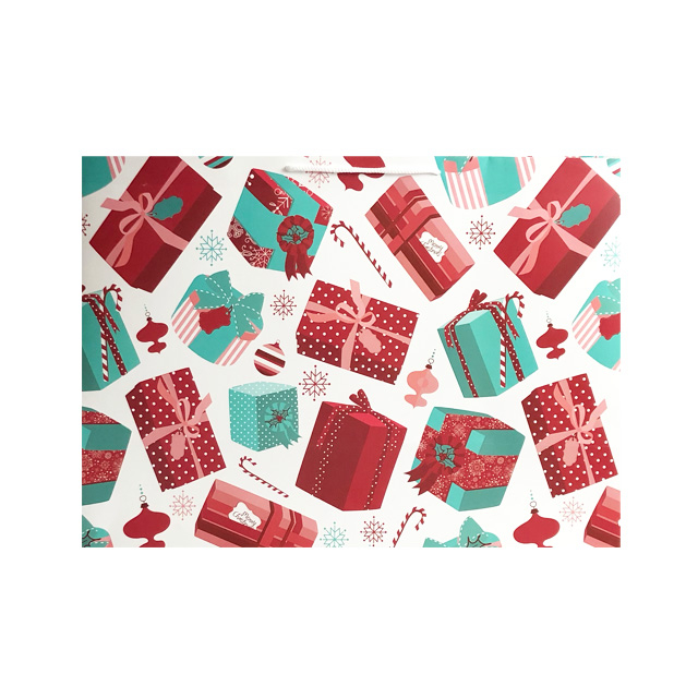 Punga de cadou gigant, cu model specific de Craciun, este un ambalaj nu doar practic, ci si rezistent, potrivit pentru Sarbatorile de iarna: