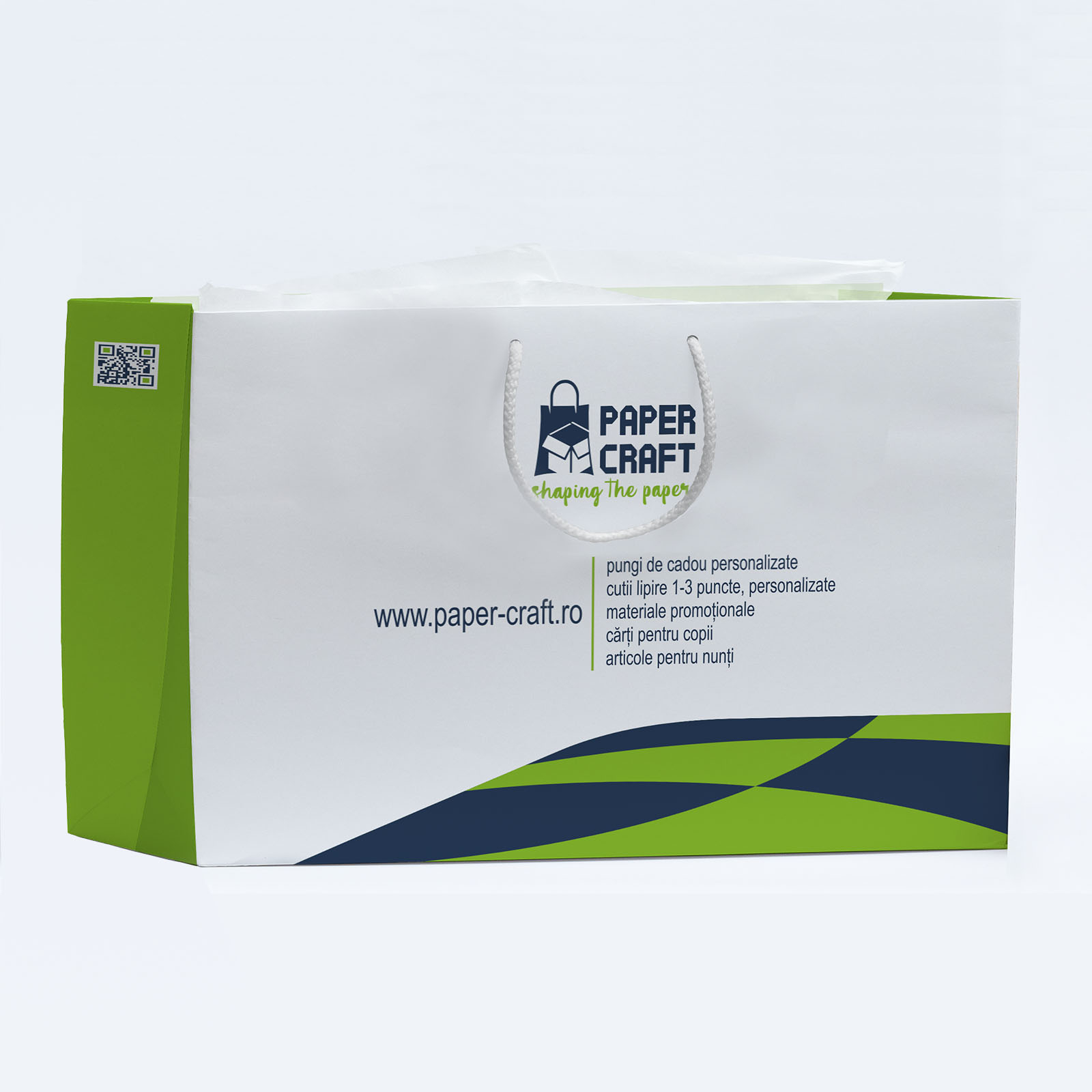- Fie ca o oferi impreuna cu produsele sau mostrele tale, o punga personalizata cu brand-ul propriu si mesajul pe care vrei sa il transmiti va creste vizibilitatea afacerii tale