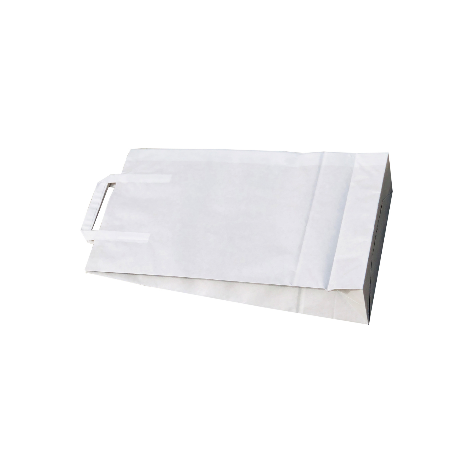 Sacosa este realizata din hartie kraft albita dublata la interior cu un strat de hartie kraft natur, ceea ce ii ofera un grad ridicat de stabilitate, permitand transportul in siguranta al produselor fragile, care necesita un grad ridicat de rezistenta.